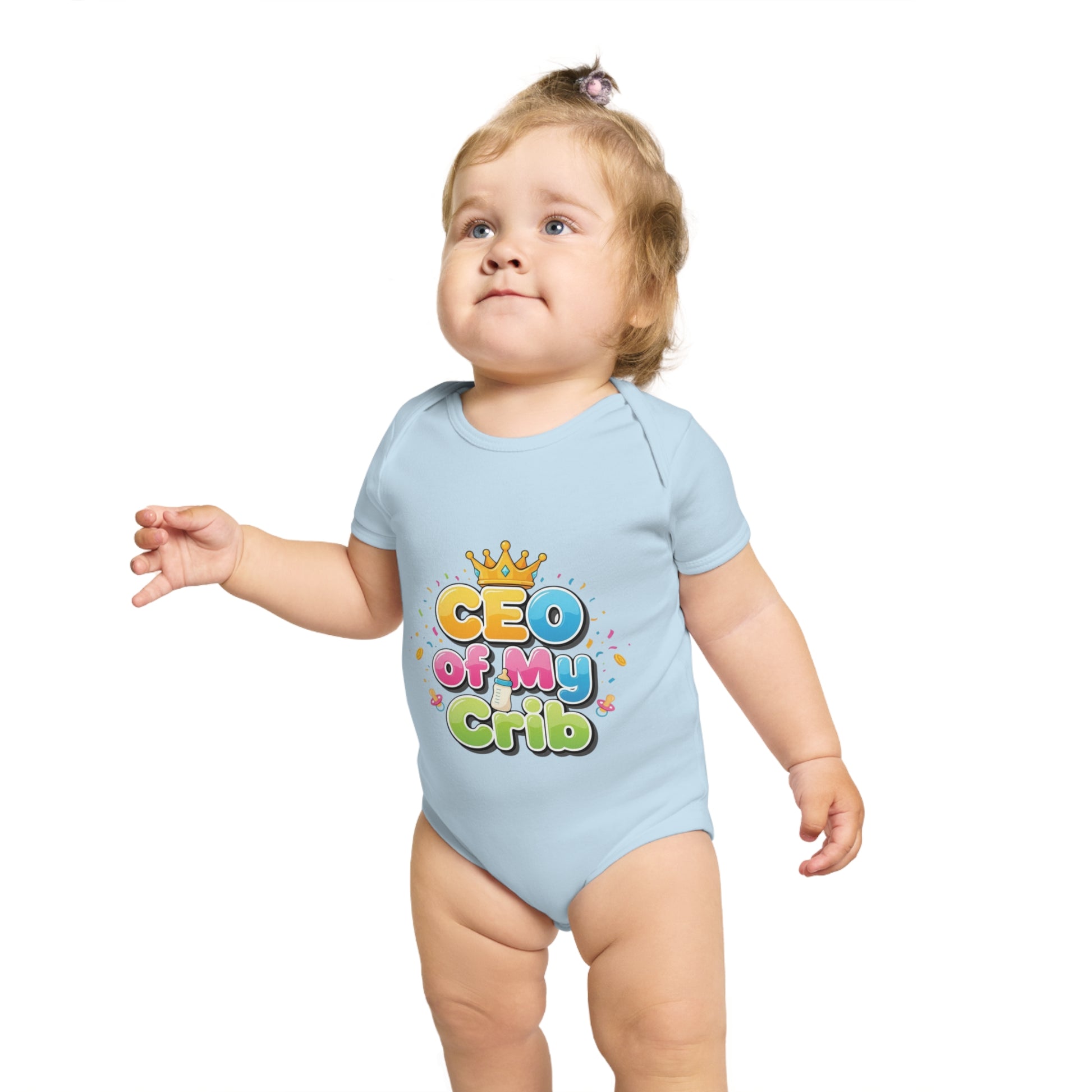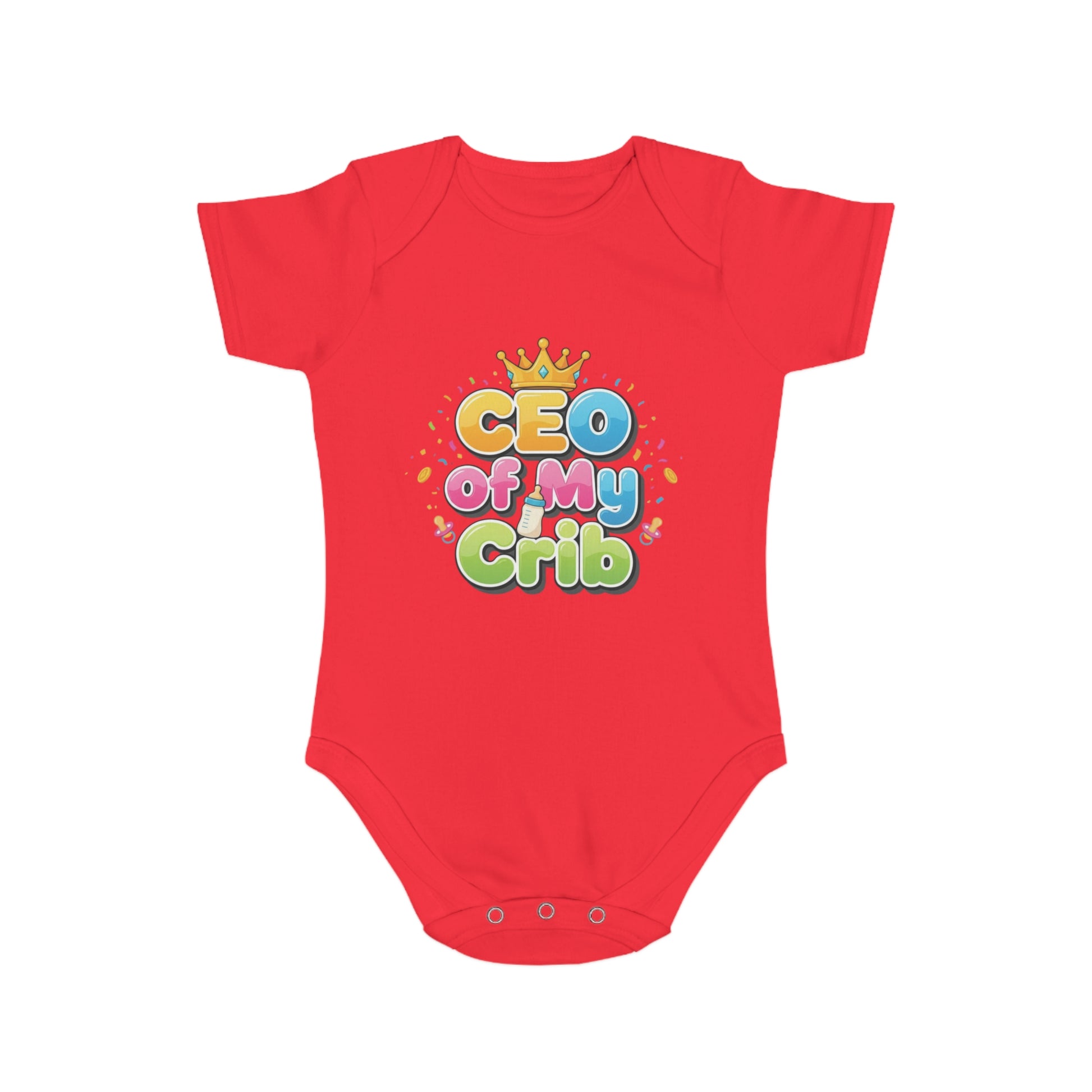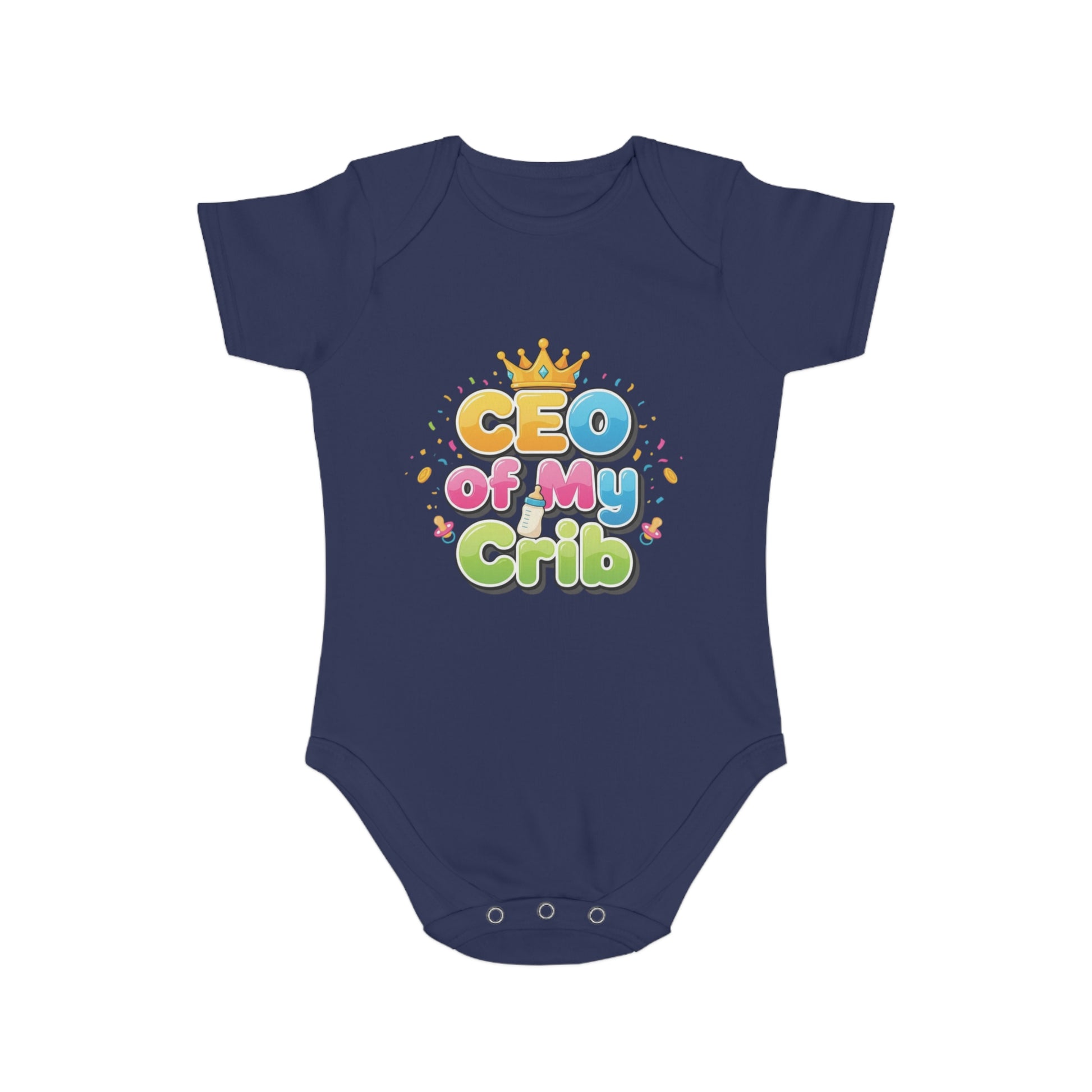 Introducing a delightful Short Sleeve Baby Bodysuit that celebrates your little one's royal status! This charming bodysuit features the playful phrase 'CEO of My Crib,' perfect for adding a dash of humor to your baby’s wardrobe. Crafted from ethically made 100% cotton, it offers exceptional softness and comfort for your baby’s delicate skin. The expandable envelope neck and YKK bottom popper closure ensure quick and easy changes, making it a practical choice for busy parents. Ideal for gifting at baby showers, birthdays, and holidays, this bodysuit is sure to become a cherished staple. It’s perfect for little ones who are the kings and queens of their households, celebrating milestones and making memories!