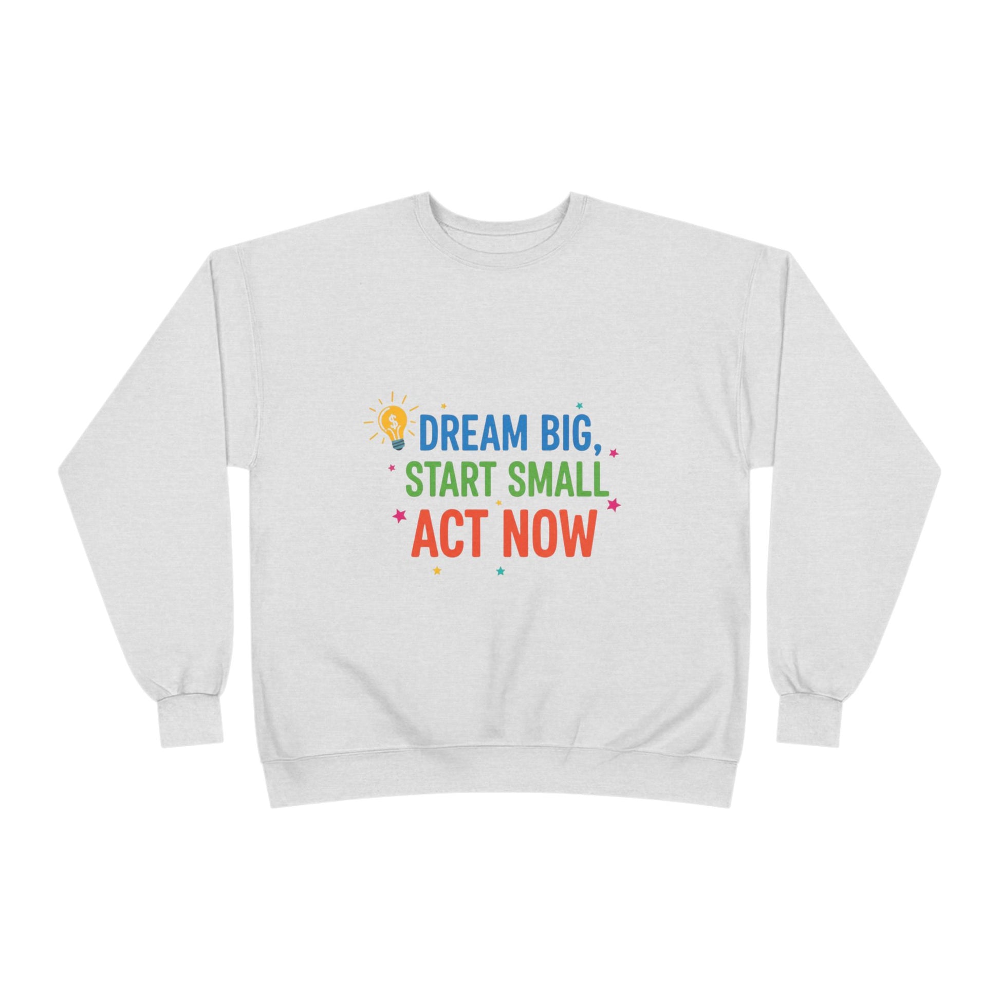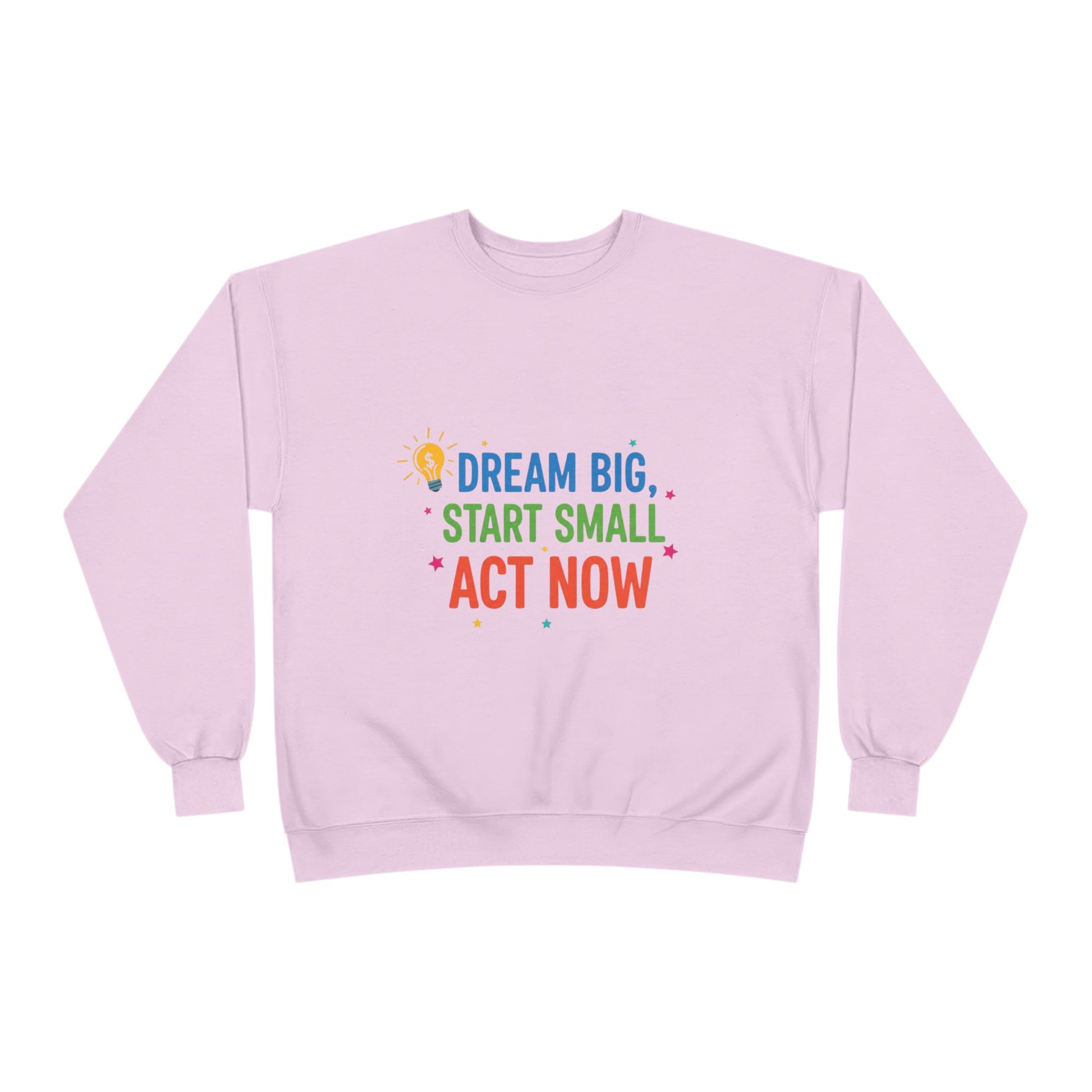 Dream Big, Start Small Sweatshirt - Unisex Eco-Friendly Crewneck, Inspirational Apparel for Motivation, Gift for Dreamers
