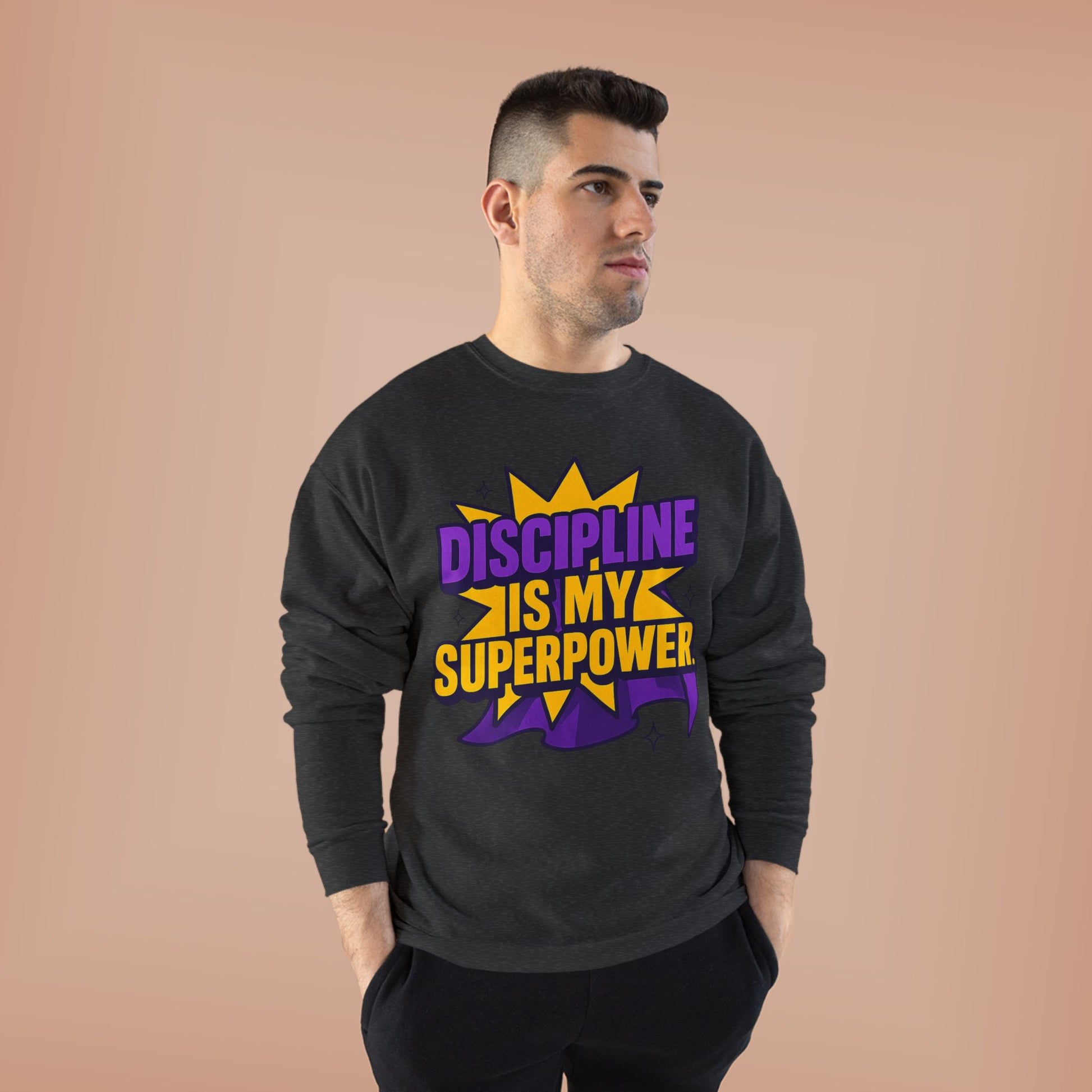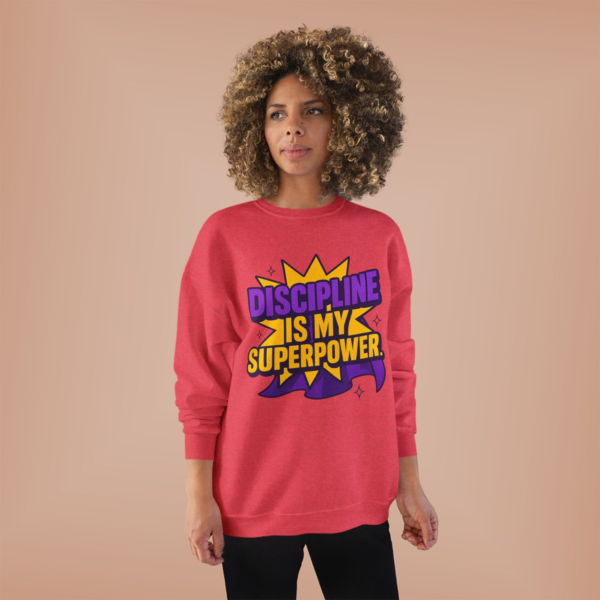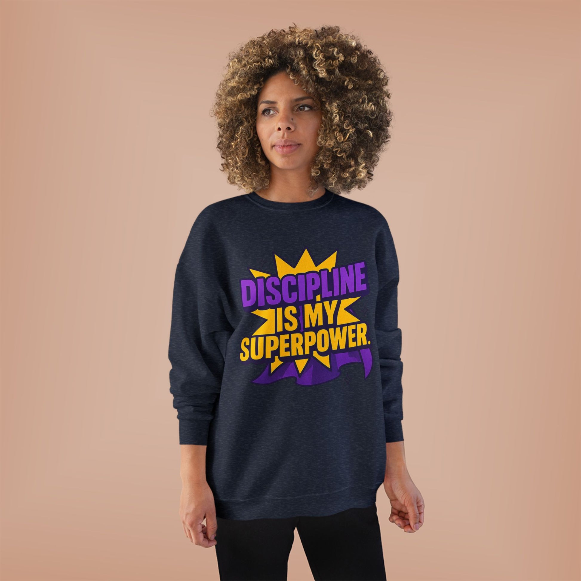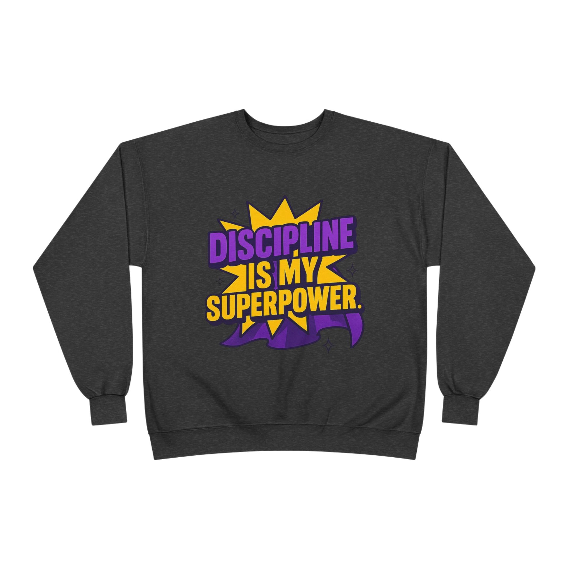 Eco-Friendly Crewneck Sweatshirt - "Discipline is my Superpower" | Unisex, Motivational Gift, Casual Wear, Fitness Apparel