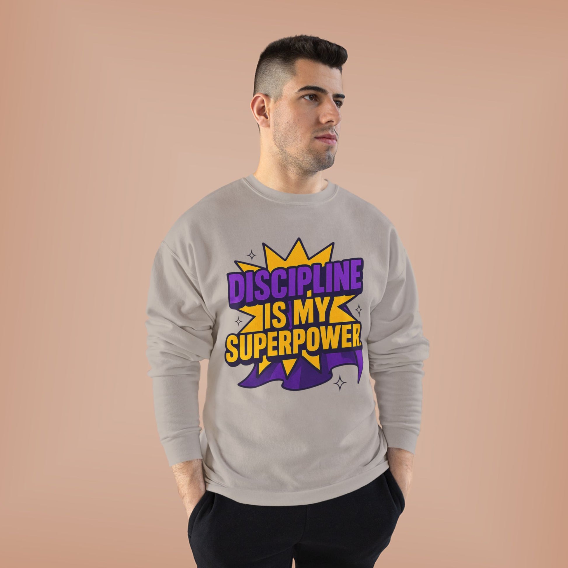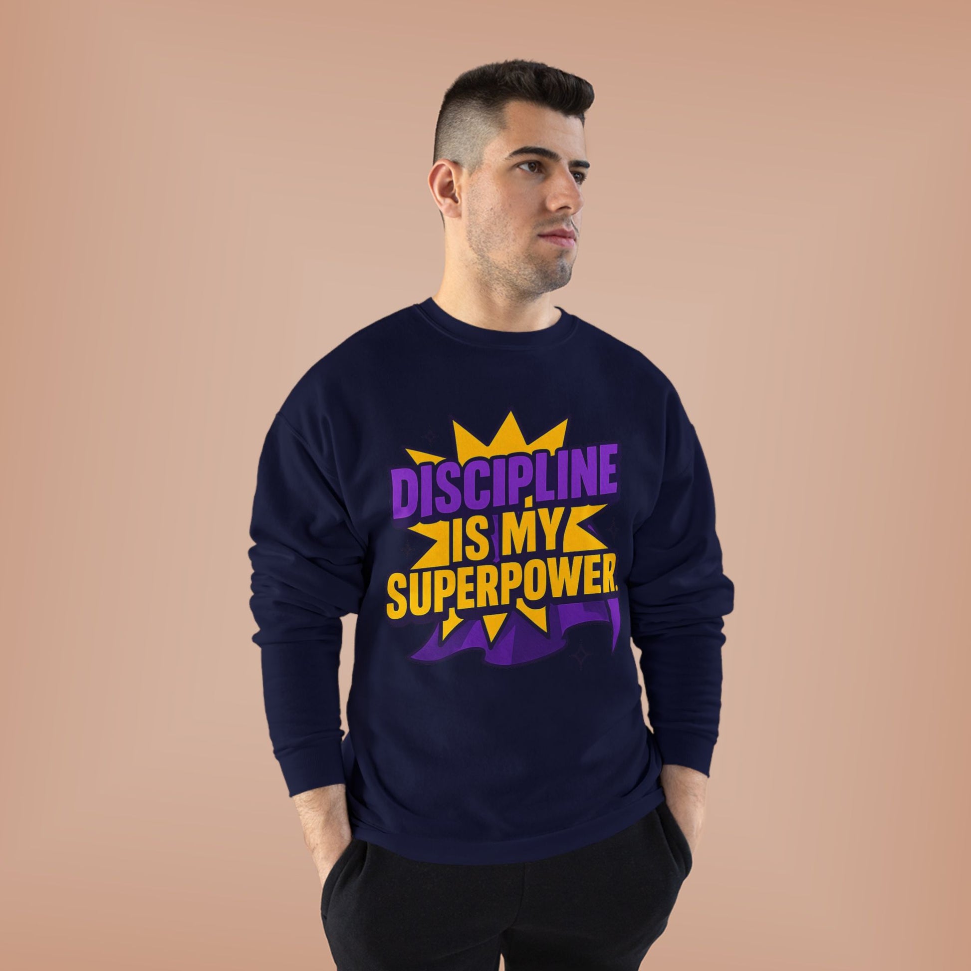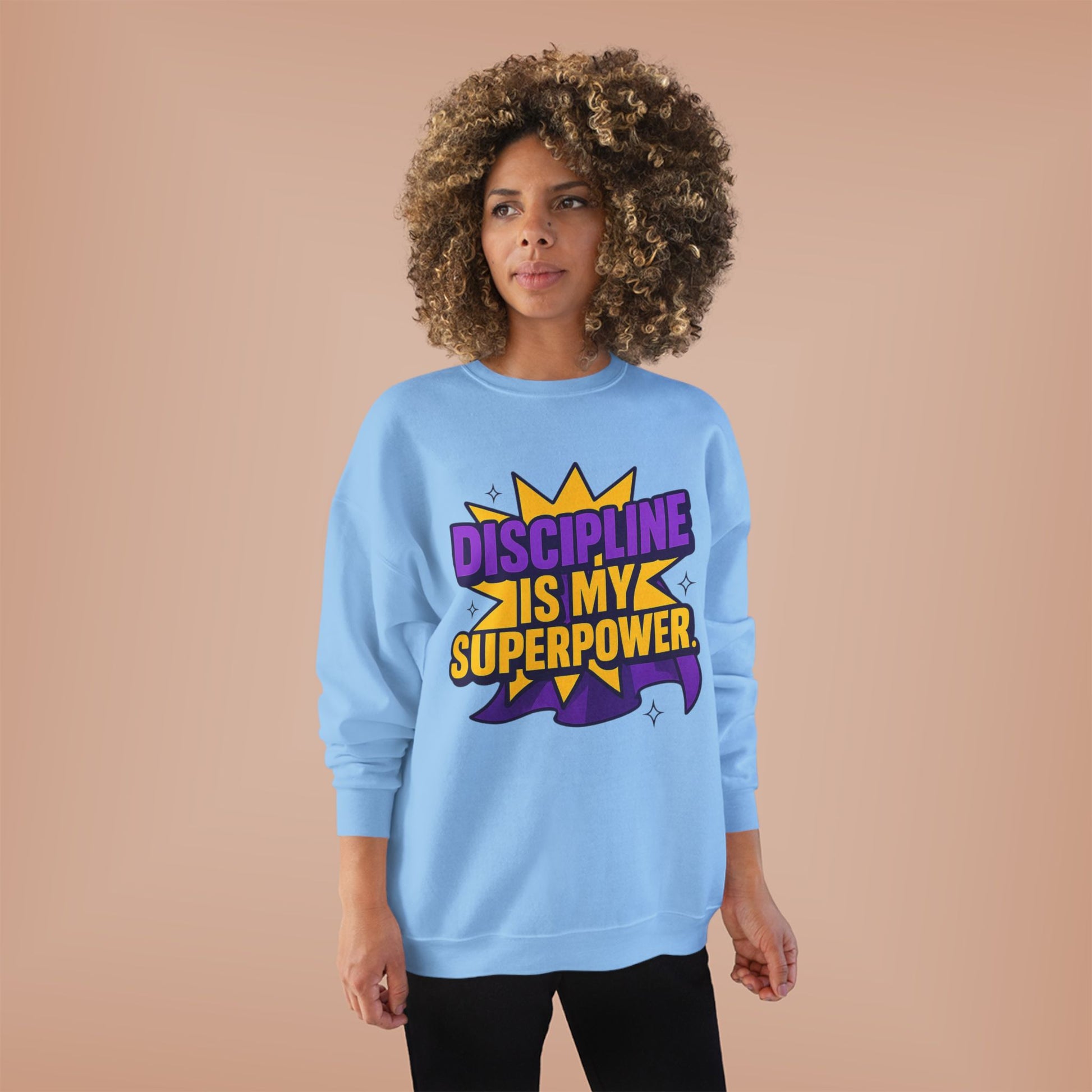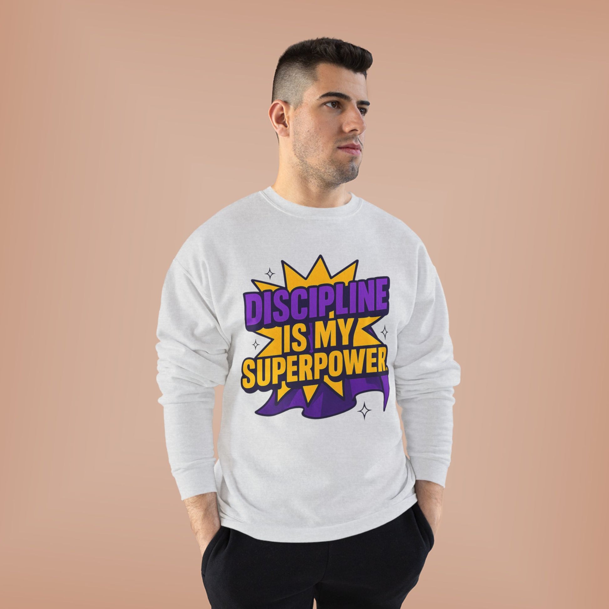 Eco-Friendly Crewneck Sweatshirt - "Discipline is my Superpower" | Unisex, Motivational Gift, Casual Wear, Fitness Apparel