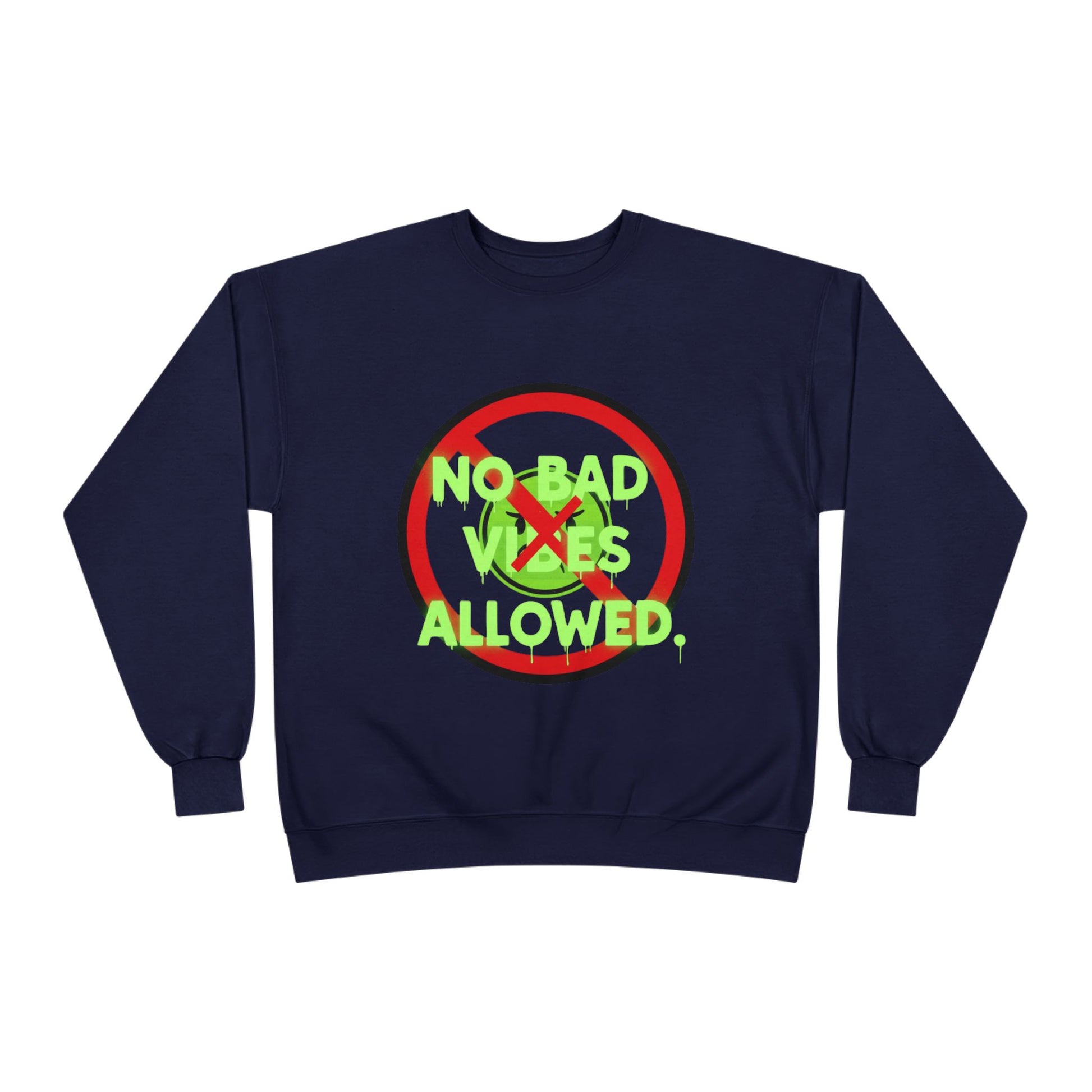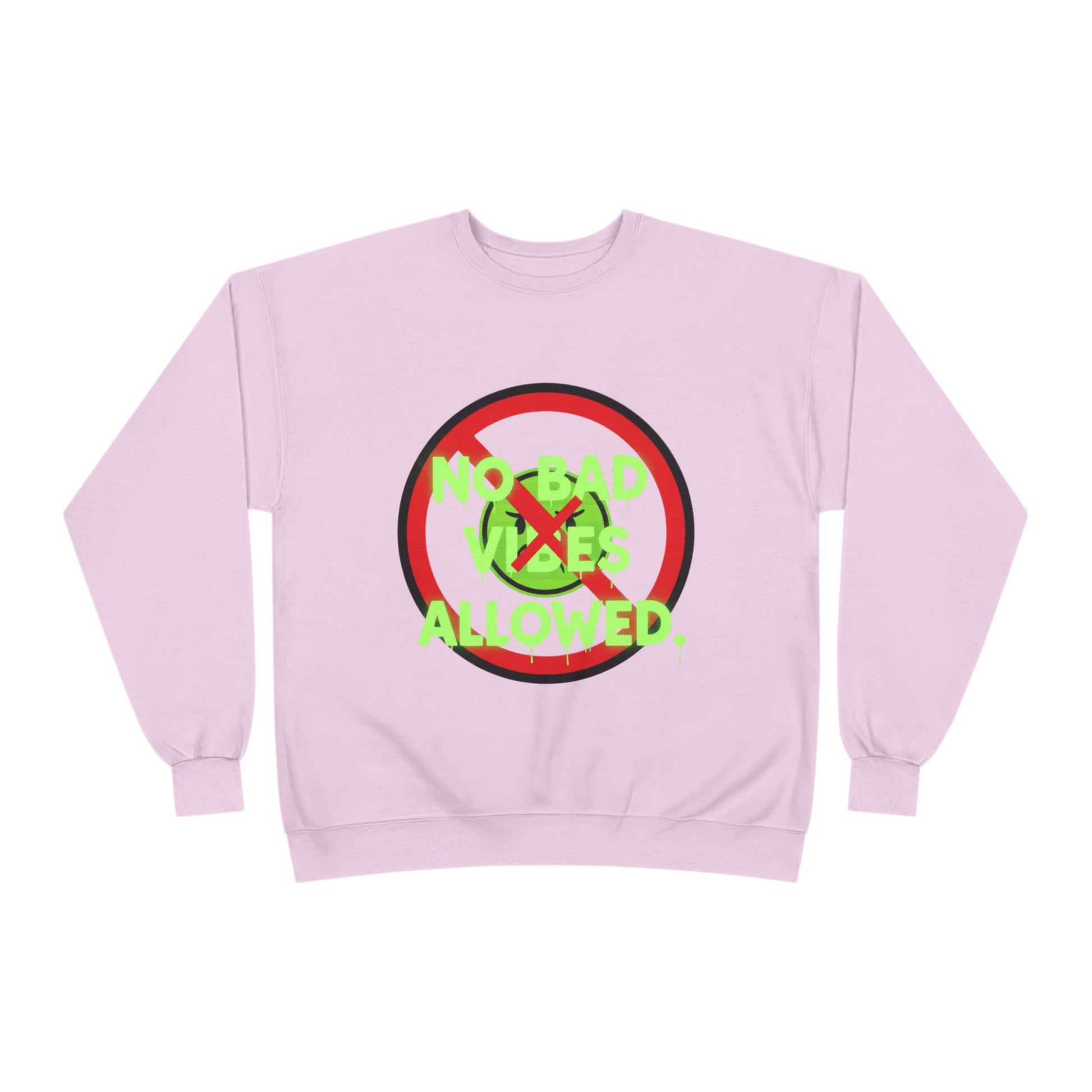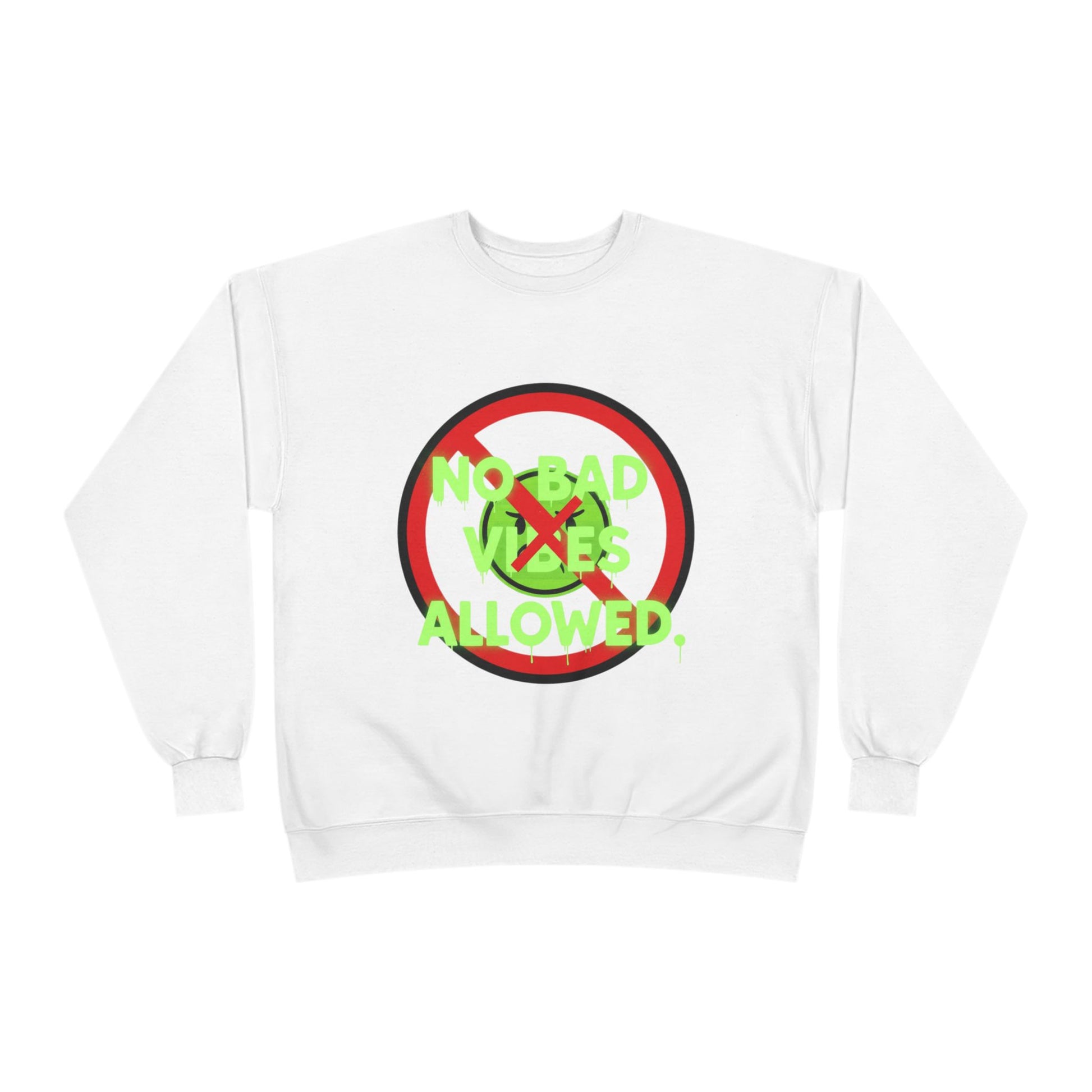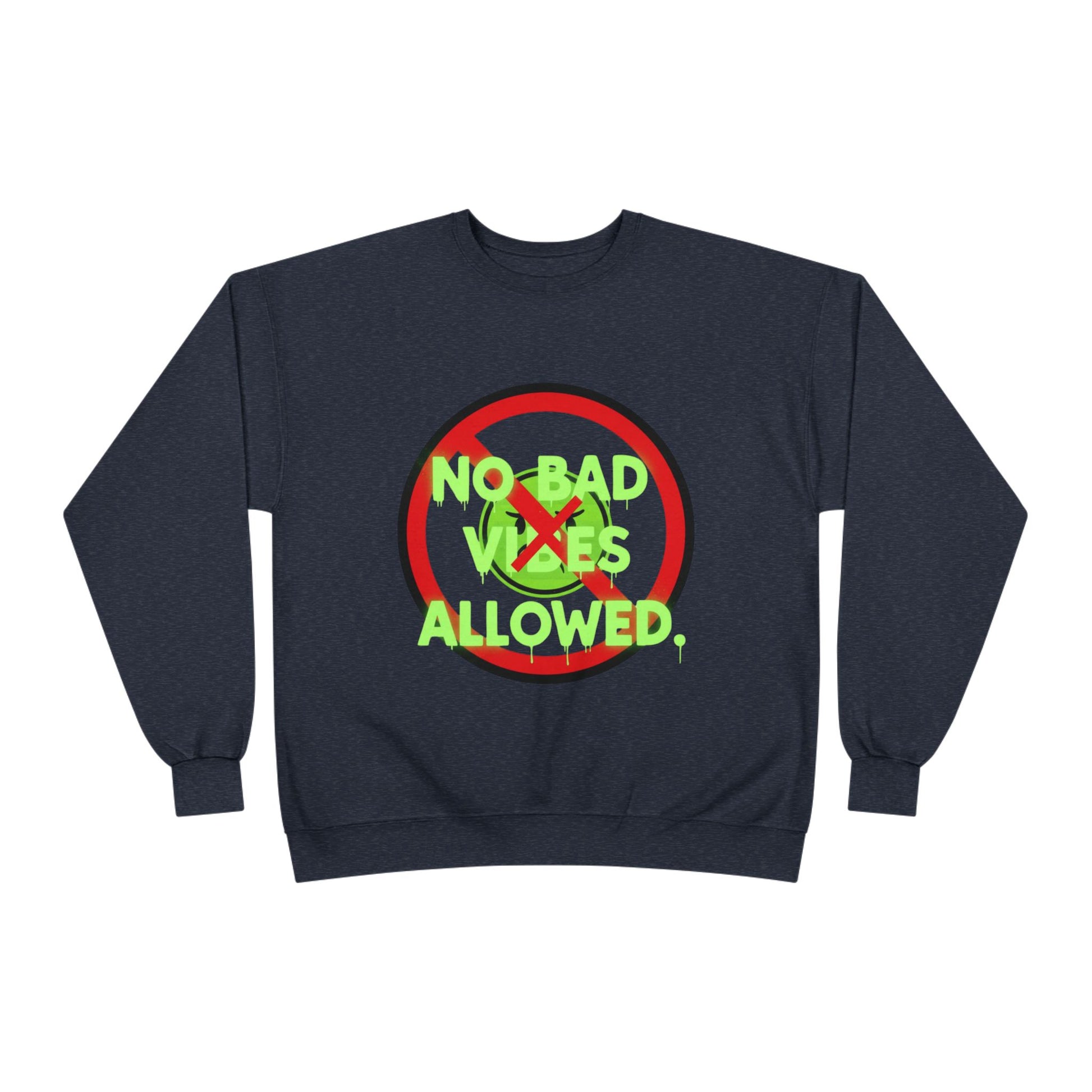 Eco-Friendly Crewneck Sweatshirt - No Bad Vibes Allowed, Relaxed Fit, Casual Wear, Gift for Friends, Vibe Check Fashion