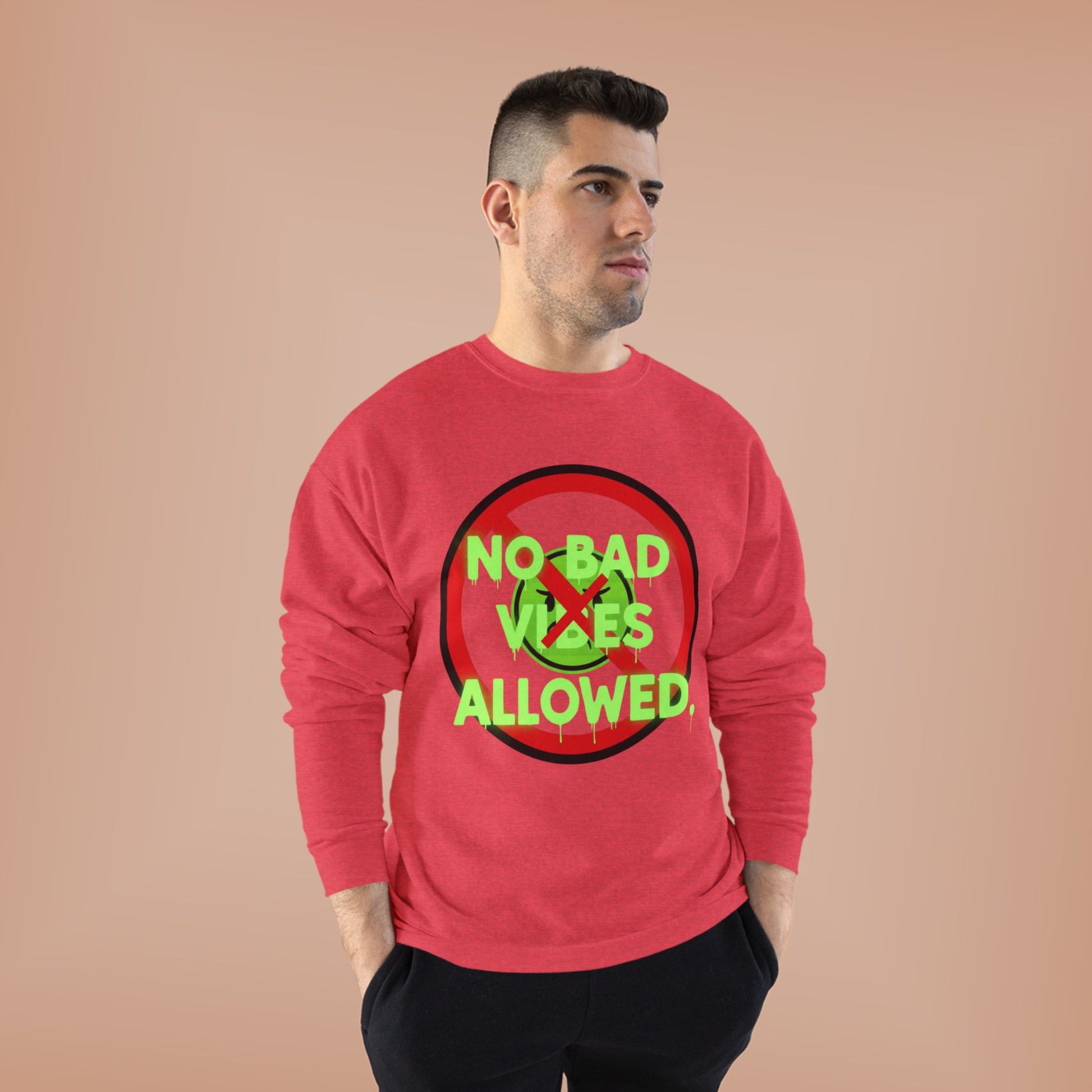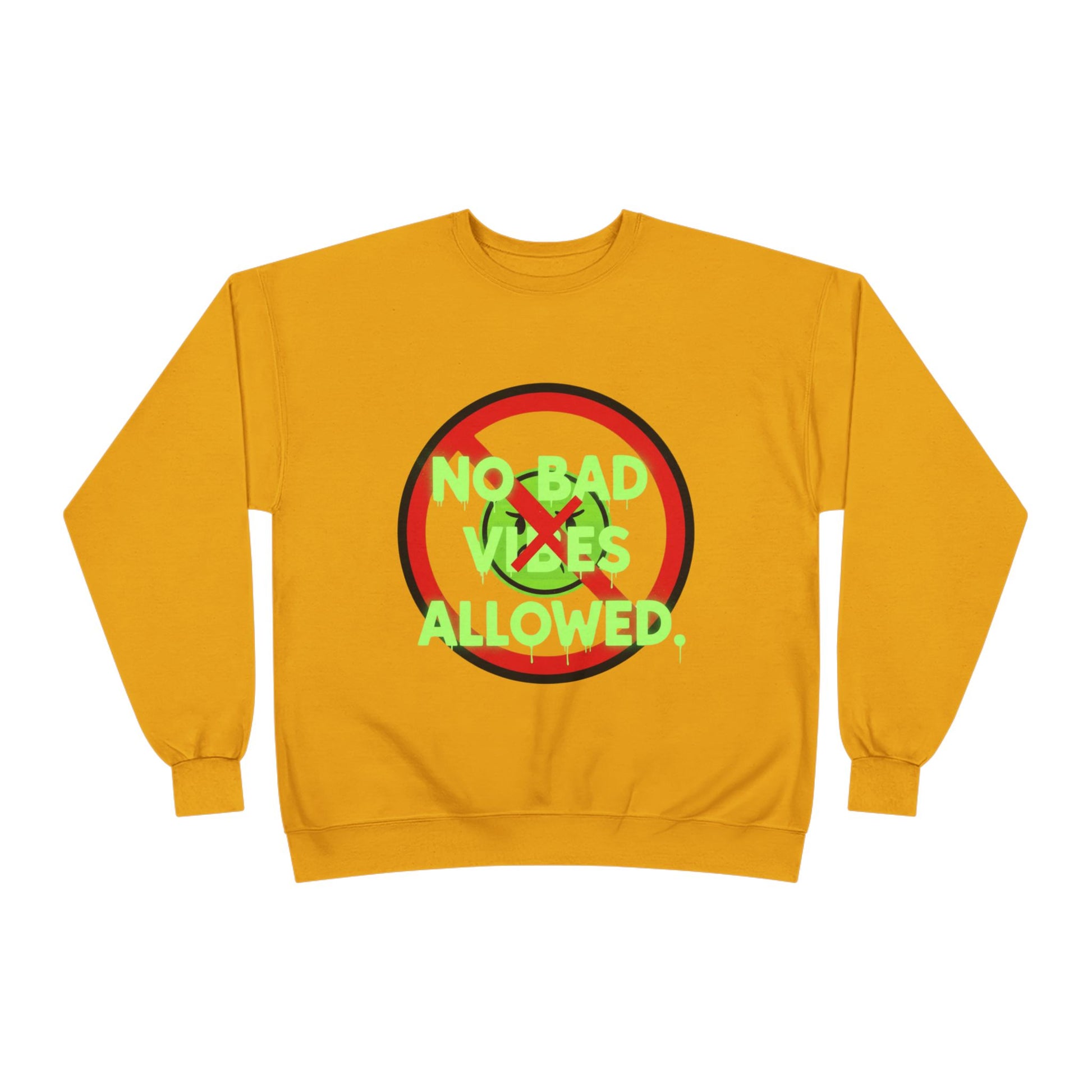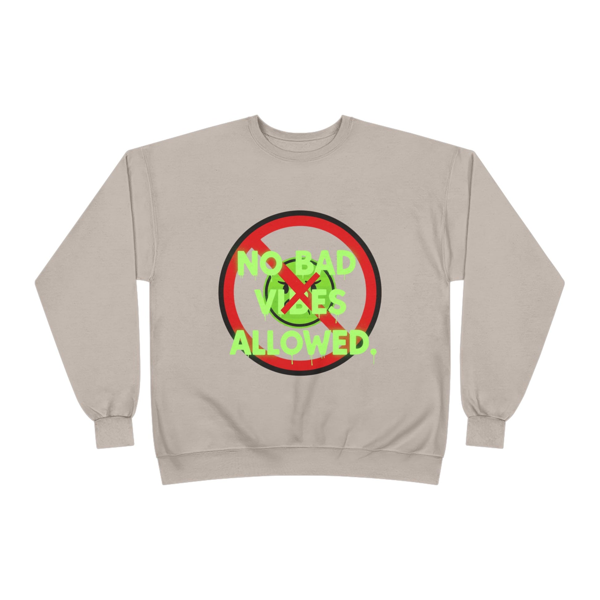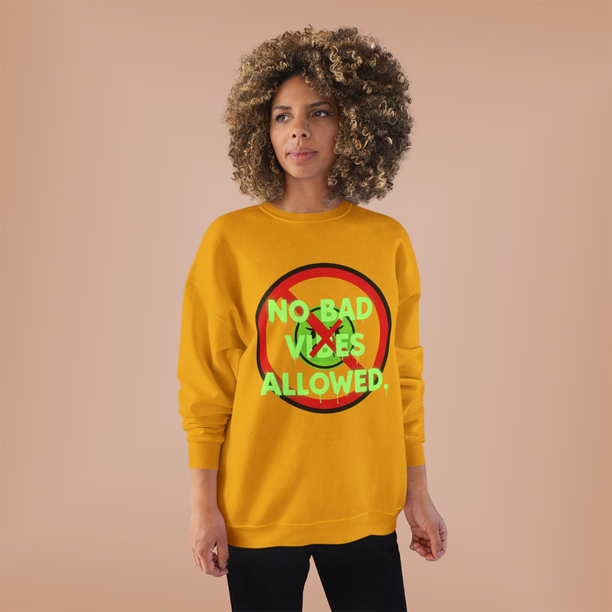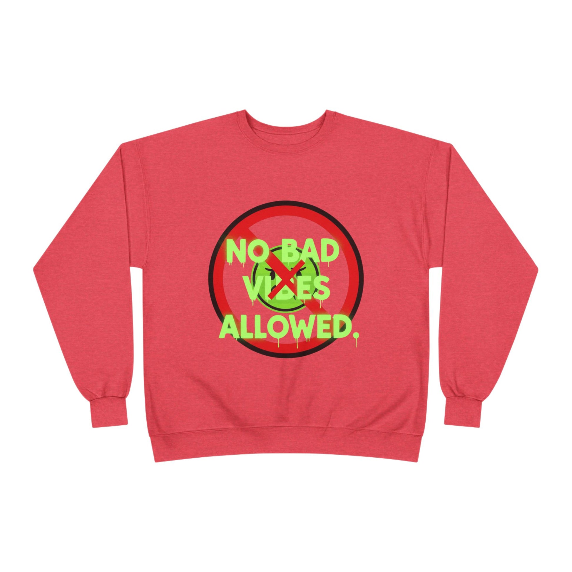 Eco-Friendly Crewneck Sweatshirt - No Bad Vibes Allowed, Relaxed Fit, Casual Wear, Gift for Friends, Vibe Check Fashion